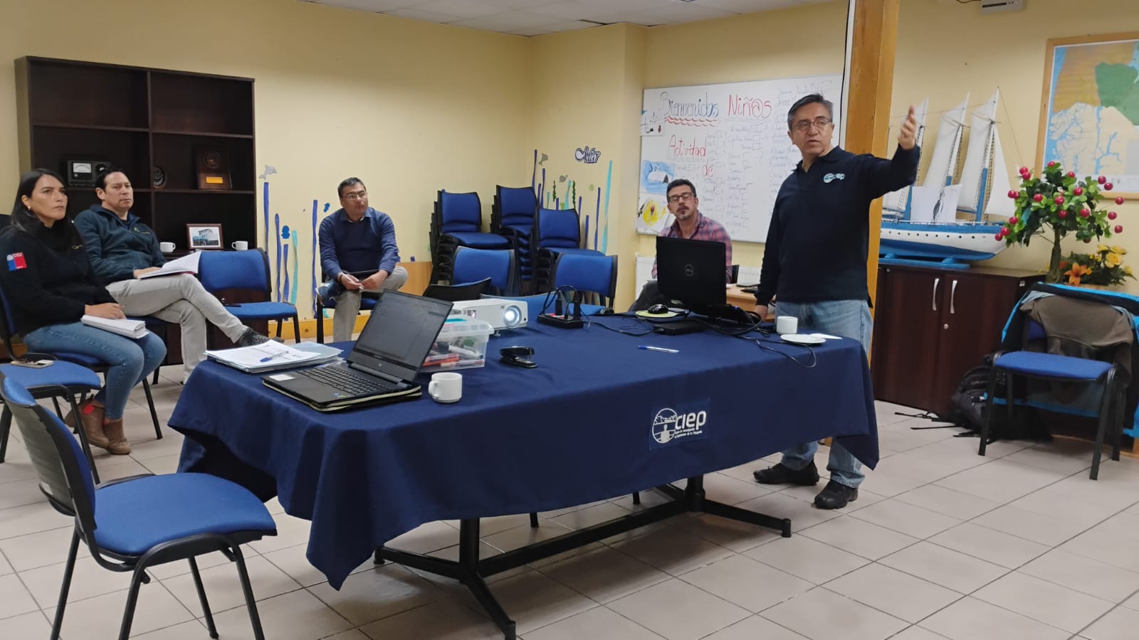 El programa, con una duración de 24 meses, fue lanzado el 11 de diciembre de 2025 en la ciudad de Puerto Aysén. De manera paralela, un equipo de profesionales de CIEP inició el entrenamiento en el estándar MSC, con el objetivo de fortalecer capacidades para la certificación. Su ejecución contempla talleres desarrollados en conjunto con instituciones asociadas y pescadores artesanales, orientados al uso de nuevas tecnologías para una pesca sostenible, promoviendo la actualización de conocimientos y el intercambio de experiencias entre los usuarios de la pesquería. Asimismo, se considera el diseño de un prototipo de trampa centollera destinada a reducir la captura de individuos no comerciales y el desarrollo de líneas de trampas con menor probabilidad de interacción con mamíferos marinos. El cronograma incluye actividades de divulgación dirigidas a servicios públicos regionales vinculados a la legislación y fiscalización pesquera, como SUBPESCA y SERNAPESCA, al Comité de Manejo de Crustáceos Bentónicos y a otras instituciones relevantes para el desarrollo pesquero regional. Durante enero de 2026 se realizaron entrenamientos presenciales en el estándar MSC y charlas dirigidas a investigadores de la Línea de Pesca CIEP diversos y a grupos de interés, respectivamente. Adicionalmente, se dio inicio a talleres para pescadores en las localidades de Puerto Aysén, Melinka, Puerto Aguirre y Puerto Cisnes.